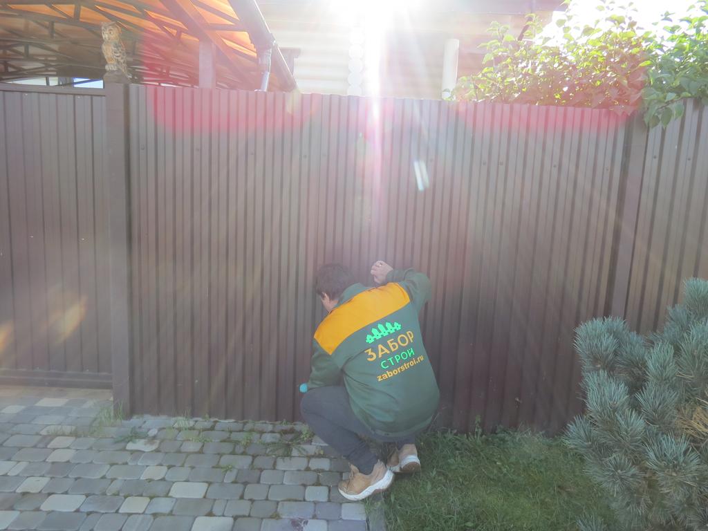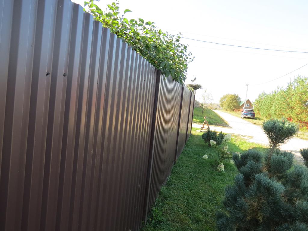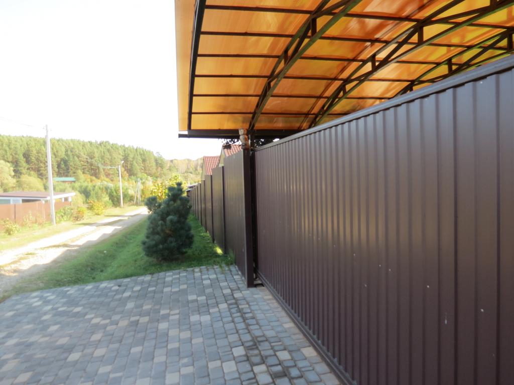 Откатные ворота из профнастила на винтовых сваях (цена на бетонном основании +20000р)